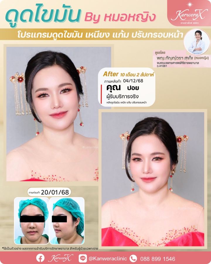 คลินิกดูดไขมัน หากคุณกำลังมองหาคลินิกดูดไขมันที่ให้บริการ โดยแพทย์มีประสบการณ์ยาวนาน และใส่ใจทุกรายละเอียด KarweraX Clinic คือหนึ่งในตัวเลือกที่คุณวางใจได้ หมอหญิง ผู้มีประสบการณ์ด้าน ดูดไขมัน มากกว่า 10 ปี ผ่านเคสการดูดไขมัน มาแล้วทุกจุดทั่วร่างกาย ทั้ง ดูดไขมันหน้าท้อง, ดูดไขมันต้นขา, ดูดไขมันเหนียง และอีกหลากหลายตำแหน่ง